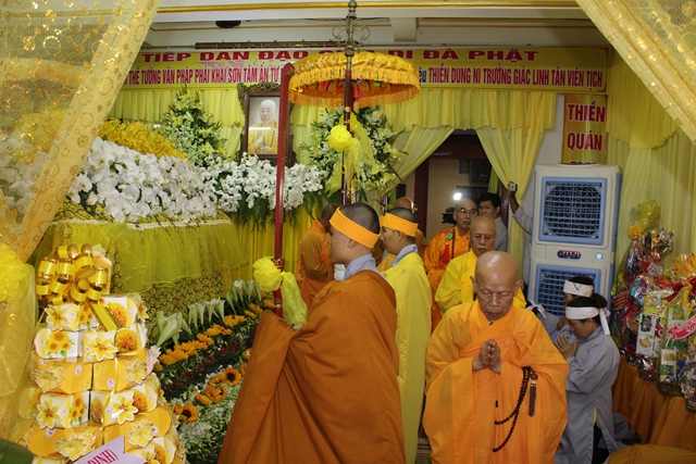 Đối trước Giác linh đài Cố Trưởng lão Ni Thích Nữ Tâm Hoa tân viên tịch, chư Tôn đức đã niêm hương bạch Phật cầu nguyện Giác linh Cố Ni trưởng cao đăng Phật quốc, hội nhập Ta bà hóa độ chúng sanh, lợi lạc hữu tình, đồng thời Hòa thượng Trưởng Môn phái có lời tưởng niệm ôn lại về cuộc đời và đạo nghiệp Cố Trưởng lão Ni tân viên tịch, Sư bà là trưởng nữ của Đức Đệ nhất Tăng thống thượng TỊNH hạ KHIẾT trong niềm cảm xúc đạo tình.
