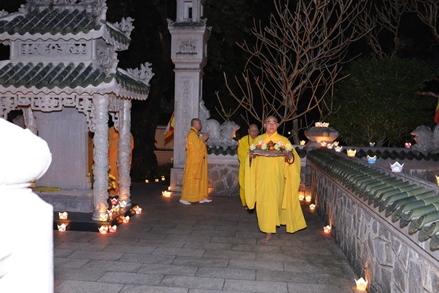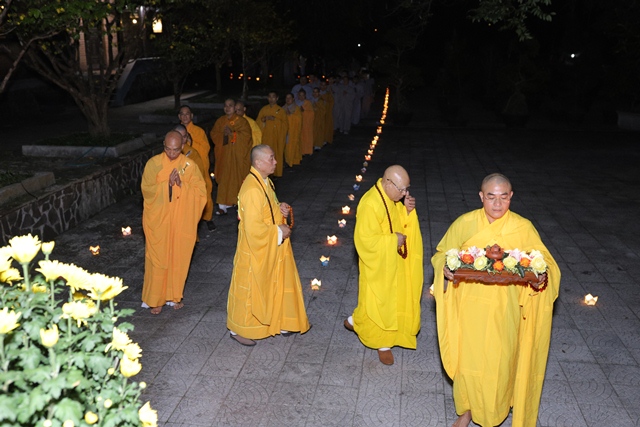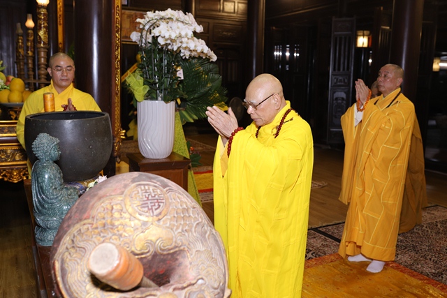 Sau thời khóa tụng kinh Di Giáo, chư Tôn đức đã hữu nhiễu bảo tháp Đức Tăng thống và đảnh lễ lịch đại Tổ sư tại Tổ đường trong không khí trang nghiêm và thành kính, tất cả đều nhất tâm tưởng niệm công hạnh của bậc chân nhân sáng ngời gương đạo hạnh.