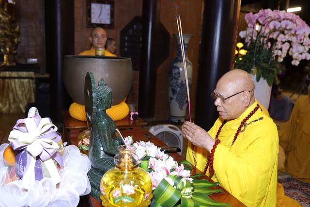 Trưởng lão Hoà thượng Thích Chơn Hương niêm hương bạch Phật