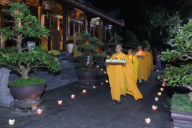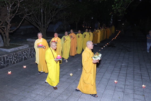 Sau thời khóa tụng kinh Di Giáo, chư Tôn đức đã hữu nhiễu bảo tháp Đức Tăng thống và đảnh lễ lịch đại Tổ sư tại Tổ đường trong không khí trang nghiêm và thành kính, tất cả đều nhất tâm tưởng niệm công hạnh của bậc chân nhân sáng ngời gương đạo hạnh.