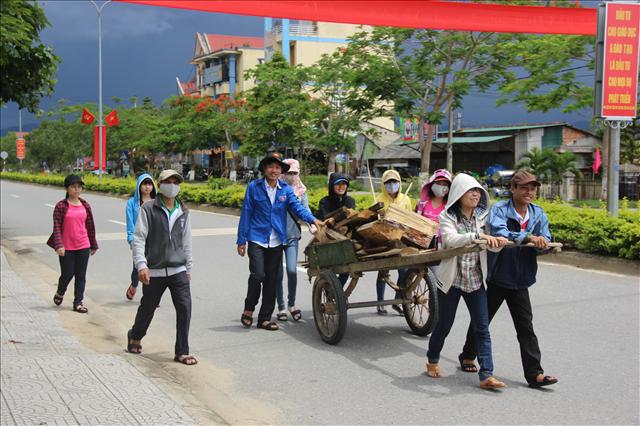 Tại NPĐ Sơn Nguyên, theo thông tin từ bạn trưởng nhóm thì ngoài các công việc như treo lồng đèn, dựng pano, áp phích,... thì các bạn ấy còn đẩy xe vận tải thô sơ chở củi từ chợ A Lưới về NPĐ.
