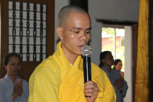 Đại đức Thích Tâm Ngọc hướng dẫn Đạo tràng cư hành nghi thức Sám hối