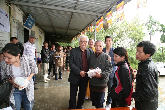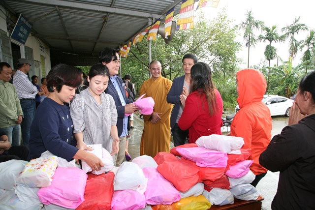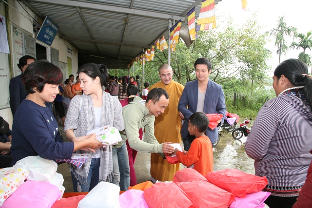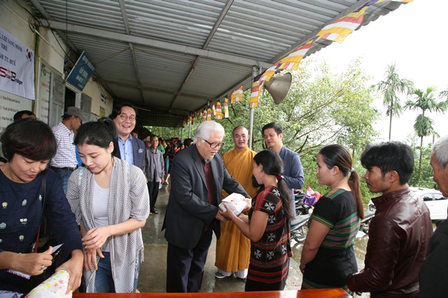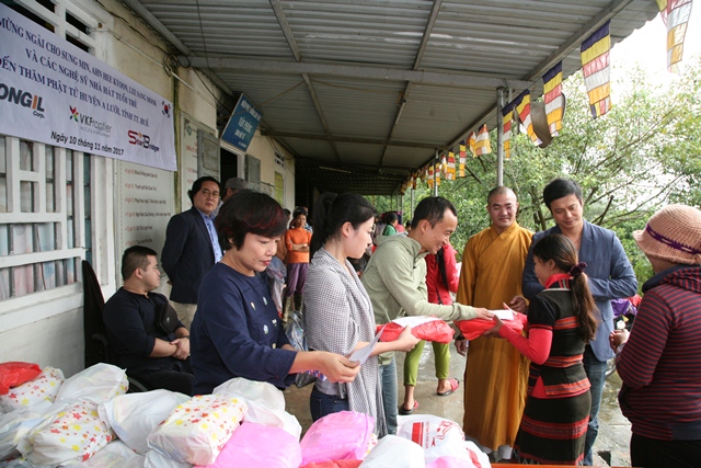 Sáng ngày 10/11, phái đoàn nghệ sĩ Hàn Quốc và các nghệ sĩ Nhà hát Tuổi Trẻ đã về thăm và tặng quà từ thiện đến bà con Phật tử dân tộc thiểu số có hoàn cảnh khó khăn tại chùa Sơn Thủy trong mùa mưa bão.