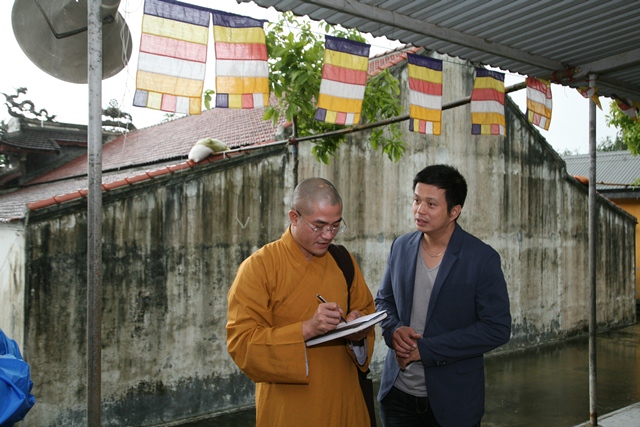 Phái đoàn nghệ sĩ Hàn Quốc và các nghệ sĩ Nhà hát Tuổi Trẻ tặng quà tại chùa Sơn Thủy