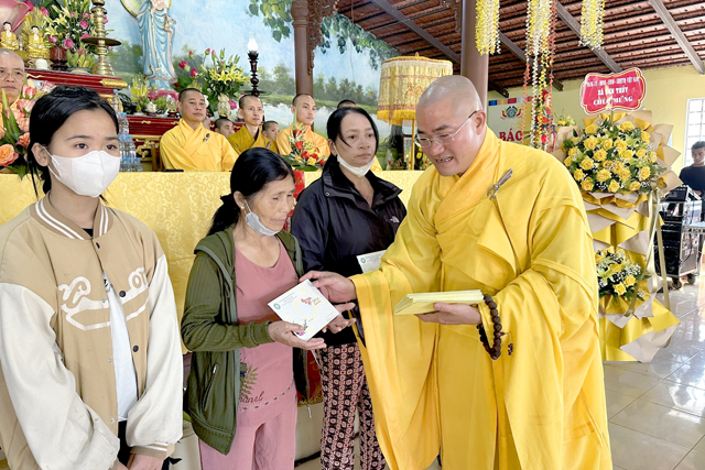 Tại Pháp hội, Hòa thượng Chứng minh Thích Huệ Phước cùng chư Tôn đức đã tặng quà đến các hộ gia đình bà con Phật tử nghèo, có hoàn cảnh khó khăn trên địa bàn.