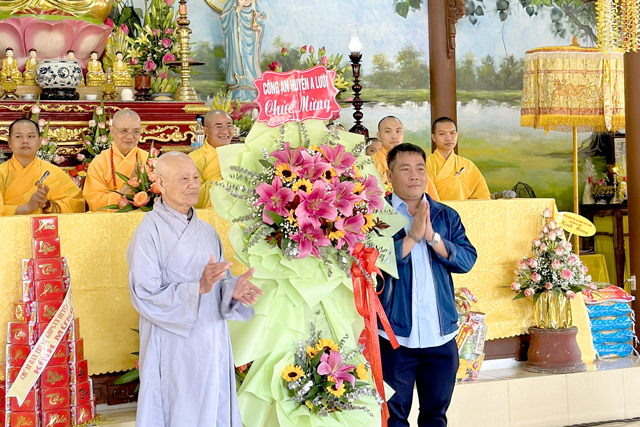 Phát biểu và ban đạo từ tại buổi lễ, Hòa thượng Thích Huệ Phước có lời cảm ơn đến lãnh đạo ban ngành các cấp đã luôn quan tâm giúp đỡ, hỗ trợ để các Phật sự tại địa phương A Lưới thành tựu viên mãn.