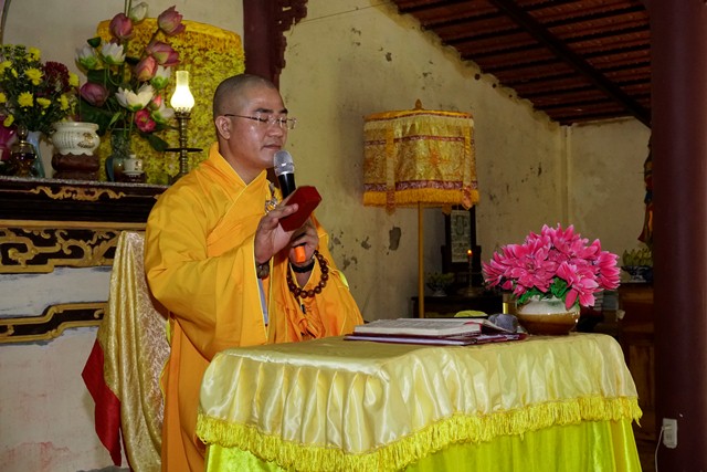 Sau phần niêm hương bạch Phật, Đại đức Trưởng Ban Trị sự GHPGVN huyện A Lưới đã truyền giới Bát Quan trai và phổ biến một số công tác Phật sự của Ban Trị sự đến quý đạo hữu Phật tử.