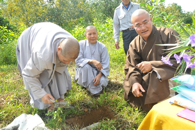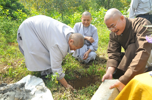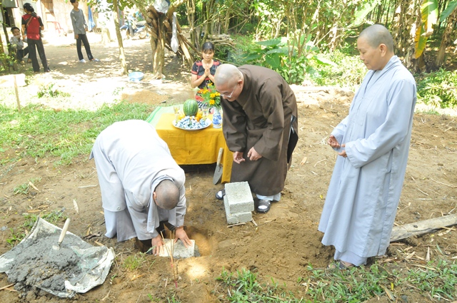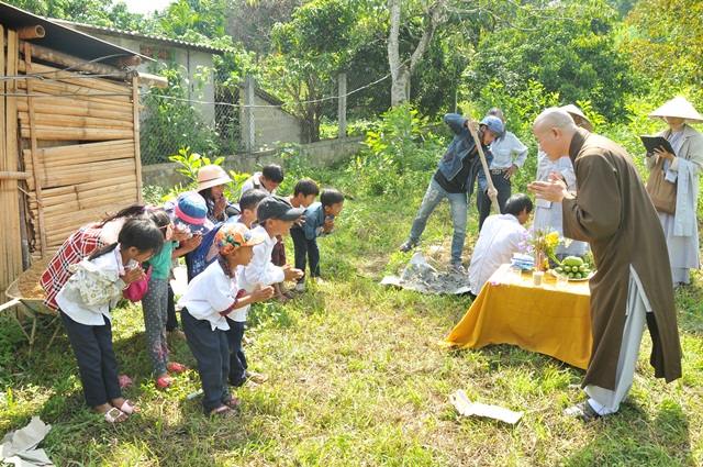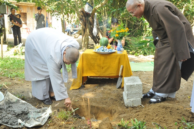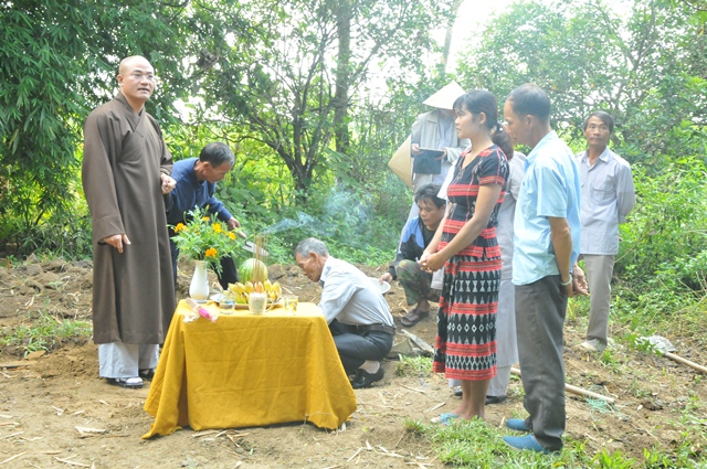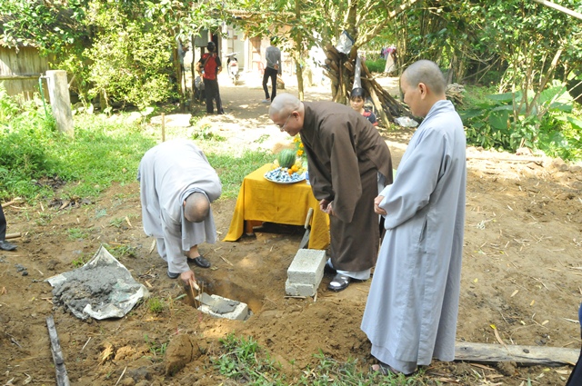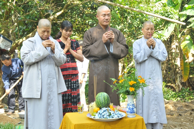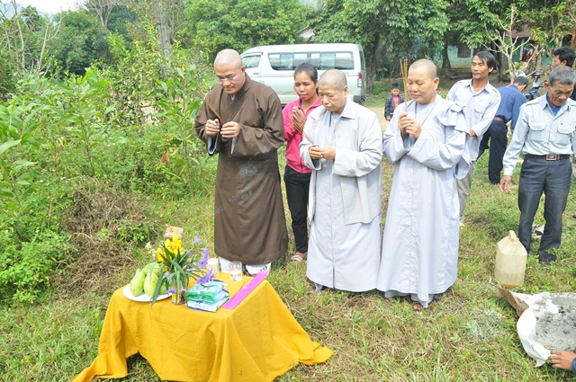 Đại đức Trưởng Ban Trị sự GHPGVN huyện A Lưới - Thích Tâm Phương; Ni sư Thích Nữ Như Huy, trú tại Tịnh thất Long Ẩn; Ni sư Thích Nữ Diệu Trung, Phó Trưởng BTS, Trưởng Ban TTXH; Sư cô Thích Nữ Thoại Tường cùng quý Đạo hữu đến cử hành lễ động thổ xây dựng nhà tình thương.