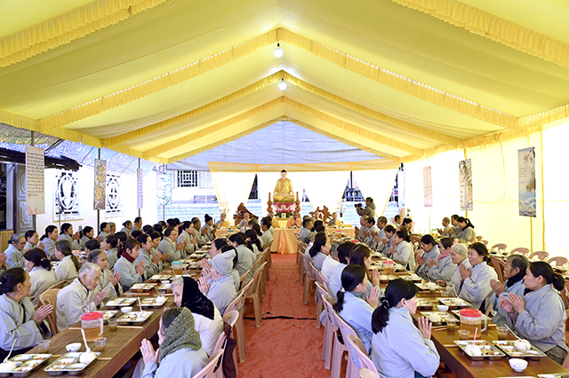Sau phần chia sẻ pháp thoại, chư Tôn đức đã hướng dẫn quý Phật tử thực hành Nghi thức Quá đường (Dùng cơm trong chánh niệm) và kinh hành niệm Phật. Qua khóa tu mỗi vị hành giả sẽ học được nhiều điều bổ ích cũng như cách sống làm sao tìm thấy an lạc tự thân từ đó chia sẽ niềm an lạc đến tất cả mọi người.