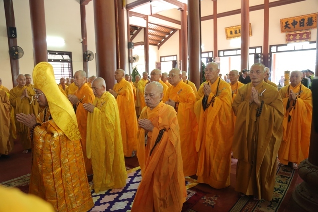 Trước đó, toàn thể chư Tôn thiền đức đã vân tập đông đủ tại Bảo điện Tổ đình Từ Đàm cử hành Bố tát và tụng giới chung.