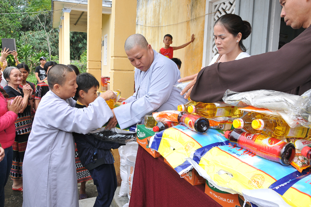 Tại đây, Ban Trị sự đã trao tăng 100 phần quà, mỗi phần quà trị giá hơn 300.000đ, nhằm chia sẻ phần nào khó khăn cùng với quý Đạo hữu đồng bào thiểu số tinh cần trong sự tu tập.