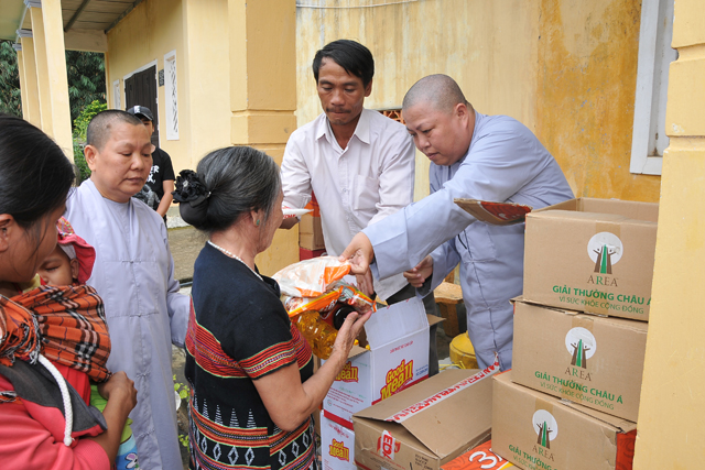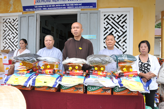 Sáng ngày 20/10, tại Văn phòng Ban Trị sự GHPGVN huyện A Lưới (NPĐ Sơn Thủy, thôn Quảng Phú, xã Sơn Thủy, huyện A Lưới), Đại đức Phó Trưởng ban Thường trực Ban Trị sự GHPGVN huyện A Lưới - Thích Tín Nhơn; Ni sư Thích Nữ Diệu Trung, Phó Ban Trị sự GHPGVN huyện A Lưới; Ni sư Thích Nữ Vĩnh Bình, chùa Mỹ Duyệt, quận Tân Bình, Tp. HCM và quý Phật tử hảo tâm đã về thăm và tặng quà đến quý bà con đồng bào có hoàn cảnh khó khăn, thực hiện đức tính từ bi cứu khổ của Đạo Phật và tinh thần Đạo lý lá lành đùm lá rách của Dân tộc Việt Nam.