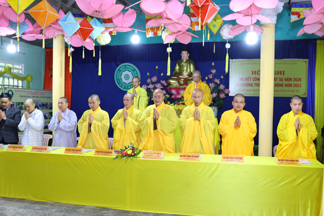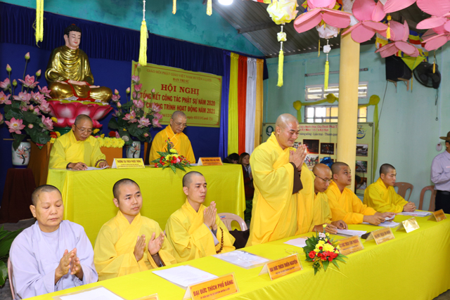 Giờ này, với đầy đủ ý nghĩa củng cố phát triển tổ chức và các công tác Phật sự, dựa trên thành quả của năm 2020 để thảo luận bổ sung chương trình hoạt động Phật sự năm 2021; thay mặt Thường trực Ban Trị sự, chúng con xin tuyên bố khai mạc Hội nghị."