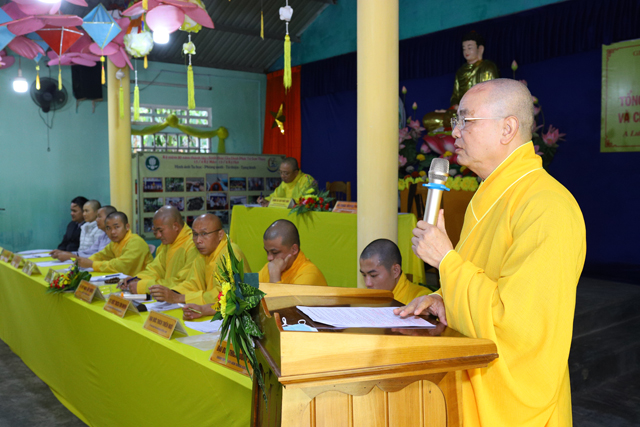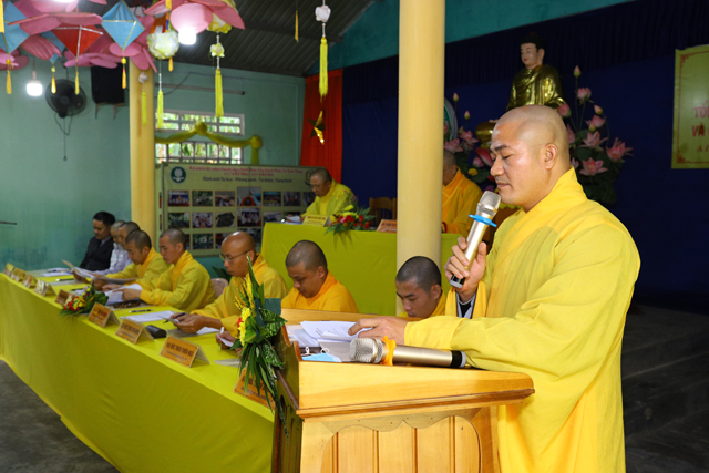 Đại đức Thích Hương Sơn, Chánh Thư ký BTS GHPGVN huyện A Lước đọc báo cáo tổng kết