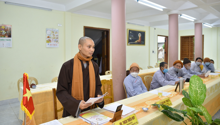 Tiếp đó, Đại đức Thích Thiền Huy, Chánh Thư ký Ban Trị sự GHPGVN huyện A Lưới đã trình bày báo cáo những thành tựu Phật sự nổi bậc của Ban Trị sự trong năm qua và chương trình hoạt động Phật sự năm 2022.