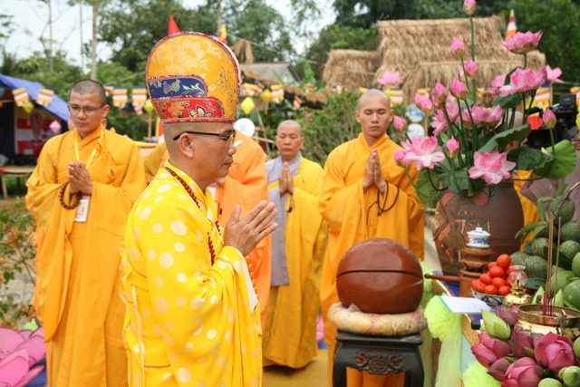 Tại buổi lễ, Thượng toạ Thích Hiền Tịnh đã tuyên đọc Thông điệp Phật lịch 2562 của Đức Pháp chủ GHPGVN gửi đến toàn thể Tăng Ni Phật tử. Thông điệp đã nhấn mạnh: Năm nay chúng ta kỷ niệm 1000 năm ngày viên tịch của Vạn Hạnh thiền sư, vị Quốc sư có công đưa Lý Công Uẩn lên ngôi vua, lập nên vương triều Lý lấy tư tưởng triết lý Phật giáo là tư tưởng chủ đạo của quốc gia độc lập tự chủ Đại Việt. Đồng thời, chúng ta cũng chuẩn bị Đại lễ kỷ niệm 710 năm ngày Đức vua - Phật hoàng Trần Nhân Tông nhập niết bàn, vị Sơ Tổ khai sáng nền Phật giáo Trúc Lâm với tư tưởng hòa quang đồng trần, đưa đạo vào đời, lấy đời phát triển đạo tiêu biểu của tinh thần nhập thế Phật giáo Việt Nam.
