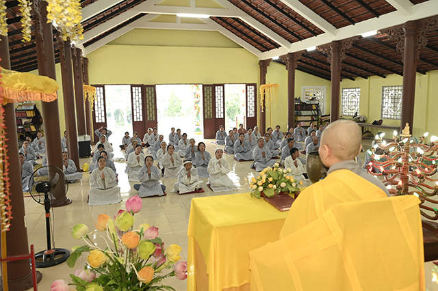 Tiếp nối chương trình tu học, Sư cô Thích Nữ Thuần Nhẫn đã có thời pháp thoại với chủ đề “Cầu nguyện tích cực và cầu nguyện tiêu cực” đến Phật tử tham dự khóa tu.