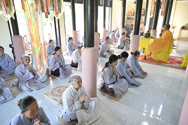 Tại buổi lễ, Đại đức Thích Thiền Ngộ đã truyền Bát quan trai giới cho các Phật tử tham dự khóa tu.