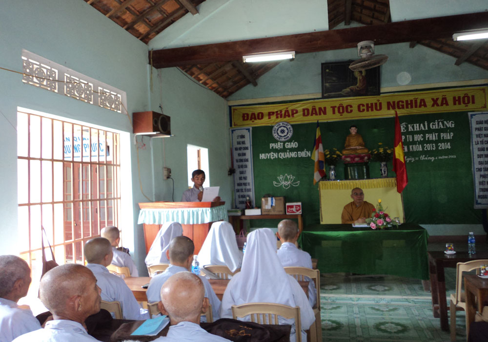 Hôm qua, ngày 03.04 Qúy Tỵ (12.05.2013) tại NPĐ Quảng Phước, thị trấn Sịa huyện Quảng Điền tỉnh Thừa Thiên Huế, theo nhu cầu nguyện vọng tu học của toàn thể đạo hữu Phật tử trên toàn huyện và hướng đến đại lễ Phật đản PL.2557-2013, Ban Hoằng pháp GHPGVN tỉnh Thừa Thiên Huế trên tinh thần khuyến tấn đã động viên khích lệ hàng Phật tử tại gia đồng thời chia sẻ bài Pháp thoại đến quý đạo hữu.