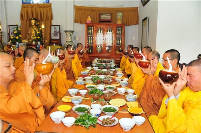 Hôm nay thật là một duyên lành đã đến với chúng con khi trở về chốn tổ Tường Vân để đảnh lễ chư Tôn thiền đức cũng như dâng cúng ngọ trai trong mùa An cư kiết hạ. Chúng con noi theo gương hiếu hạnh của đức Mục Kiền Liên thiết lễ trai diên kính dâng lên cúng dường mười phương chư Phật và hiện tiền chư Tôn thiền đức Tăng. Lễ vật tuy đơn sơ nhưng đã gói trọn tấc lòng tri ân, hoài niệm cha mẹ của chúng con, ngõ hầu đền đáp công ơn sâu dày của cha mẹ hiện tại cũng như quá vãng, tâm thành kính hướng về Tam bảo, ngưỡng mong oai thần Tam bảo cùng nguyện lực chư Tôn đức từ bi mẫn nạp, cho chúng con được ân triêm công đức, để nguyện cầu cho Cửu huyền thất tổ, Quá khứ đa sanh phụ mẫu, thân bằng quyến thuộc, được siêu sanh Tịnh Độ, Cha mẹ hiện tại, lục thân quyến thuộc tăng phước tăng thọ, bồ đề tâm tăng trưởng. Chúng con kính nguyện hồng ân Tam bảo gia hộ chư Tôn đức pháp thể khinh an, giới đức cao thâm, thọ mạng miên trường, ngõ hầu dẫn dắt cho tất cả chúng sanh trên bước đường tu học phật pháp.”