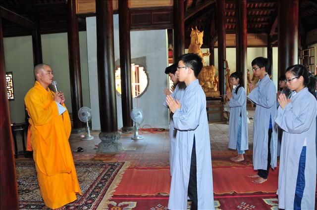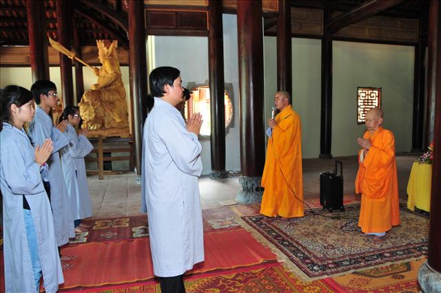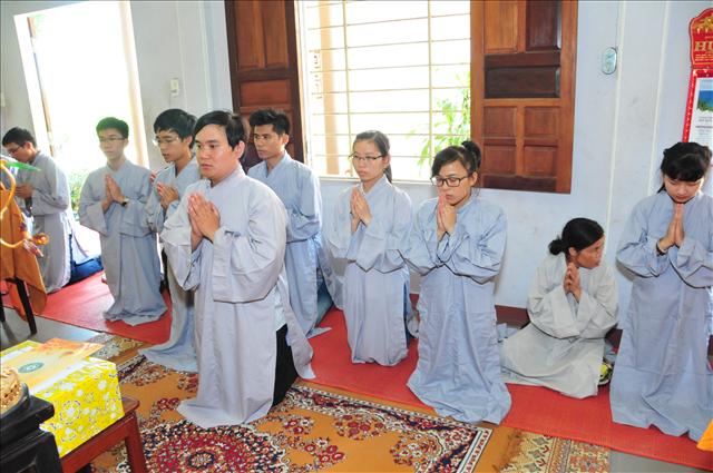 Sau đó, các anh chị em đã đảnh lễ chư Tôn đức và cùng làm lễ Quá đường, kinh hành niệm Phật theo sự hướng dẫn của chư Tôn đức.