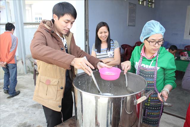 Thầy trò chúng tôi cùng nhau hỳ hục vừa thổi, vừa nêm, thế là nồi cháo đã hoàn tất đến với các bệnh nhân các khoa tại bệnh viện huyện A Lưới.