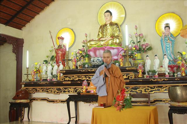 Sau khi cử hành lễ kỷ niệm, Sư cô Thích Nữ Minh Toàn đã chia sẻ pháp thoại đến đồng bào Phật tử các giới về đề tài “Bổn phận của người Phật tử tại gia”, gần 2 giờ thuyết giảng và hướng dẫn đạo tràng kinh hành niệm Phật và lễ quá đường.