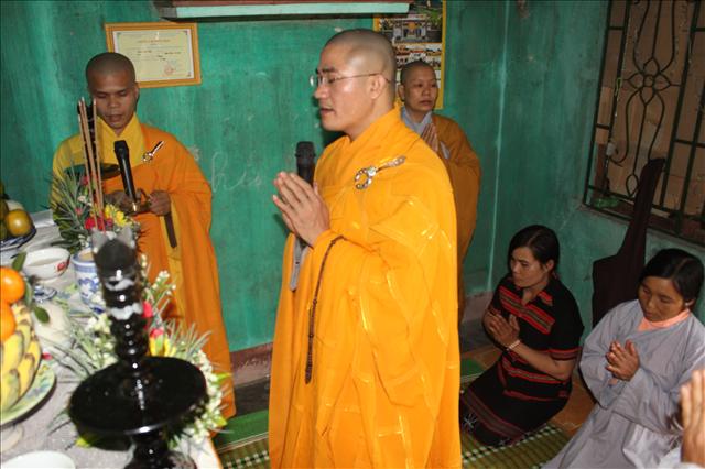 Buổi chiều cùng ngày, chư Tôn đức tiếp tục các Phật sự tại huyện nhà như phúng điếu Tang lễ quý Đạo hữu và cử hành lễ an vị Phật cho các Phật tử đồng bào dân tộc thiểu số.