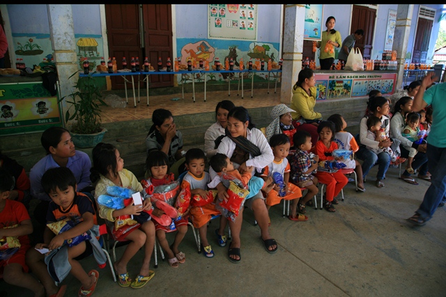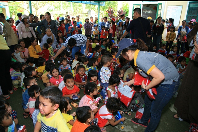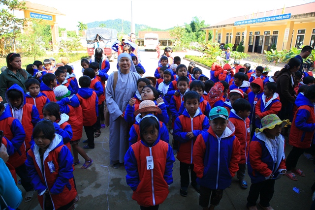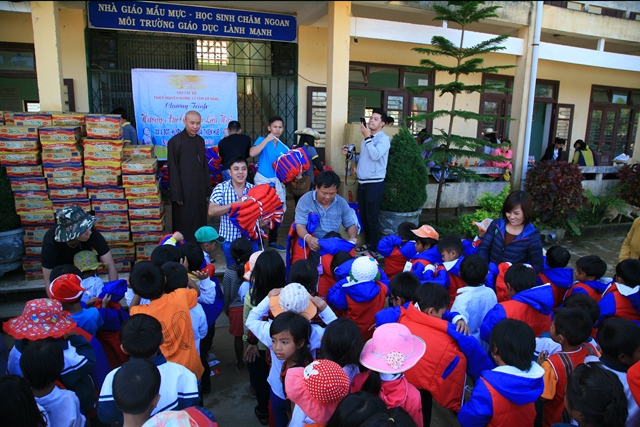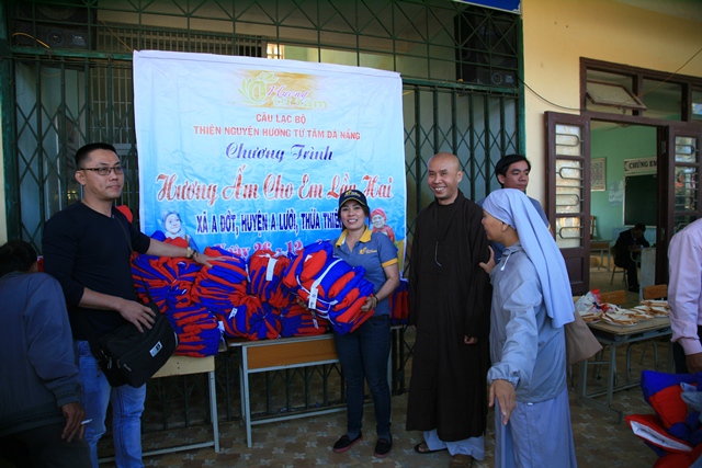 Phái đoàn đã trao tặng 510 chiếc áo ấm và dép, tổng trị giá cho lần thiện nguyện này hươn 60 triệu đồng (220 em trường Tiểu học A Đớt, 163 cháu trường Mầm non Hương Lâm và 125 cháu trường Mầm non Bắc Sơn huyện A Lưới).