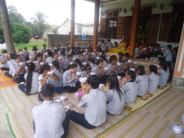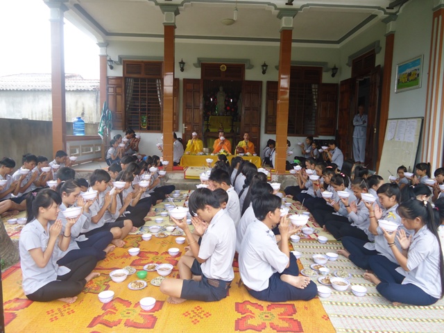 Hơn một giờ đồng hồ thuyết giảng. Đại đức cùng chư chư Tăng và quý Bác trong Ban Hộ tự Niệm Phật đường Sơn Nguyên cùng toàn thể Huynh trưởng và đoàn sinh trong GĐPT huyện A Lưới thực hành nghi thức quá đường.