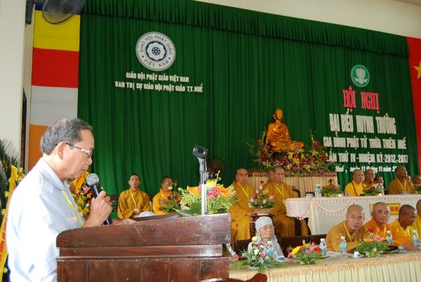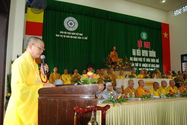 Hòa thượng Thích Khế Chơn - Trưởng BHD Phật tử tỉnh Thừa Thiên Huế thông qua nhân sự nhiệm kỳ 2012-2017