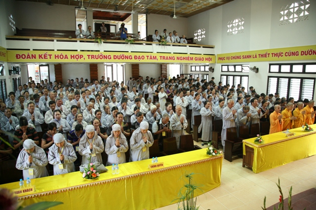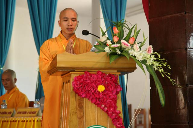 Ban Tổ chức Đại hội đã tác bạch cung thỉnh chư Tôn đức chứng minh quang lâm lễ đài. Sau nghi thức niệm Phật cầu gia hộ, Đại đức Thích Hương Sơn – chánh thư ký BTS, chánh Thư ký Đại hội thông qua chương trình Đại hội, báo cáo số lượng đại biểu; Đại đức Thích Thiền Nguyện phổ biến nguyên tắc Đại hội. Đại đức Thích Tâm Phương, Trưởng BTS, Trưởng ban tổ chức Đại hội đã cung thỉnh chư tôn giáo phẩm chứng minh Đại hội, chủ Tọa đoàn, Ban Thư ký và Ban Kiểm soát Đại hội lên điều khiển Đại hội.