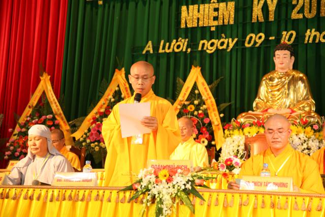 Đại hội cũng được nghe 3 tham luận của Ban Từ thiện xã hội, Ban Hoằng pháp và Ban hướng dẫn Phật tử trực thuộc BTS huyện. Đại đức Thích Tâm Phương, thay mặt chủ tọa đoàn đúc kết, sách tấn các Ban đã tích cực trong hoat động của mình trong nhiệm kỳ qua và thống nhất các đề xuất về phương hướng hoạt động trong nhiệm kỳ tới. Hòa thượng Thích Huệ Phước – Giáo phẩm chứng minh BTS Phật giáo huyện A Lưới, Chứng minh Đại hội đã ban đạo từ tán thán công đức của Ban tổ chức đã chuẩn bị chu đáo cho Đại hội và các ban đã có những tham luận chất lượng góp phần xây dựng giáo hội phật giáo huyện nhà vững mạnh trong nhiệm kỳ tới.