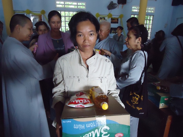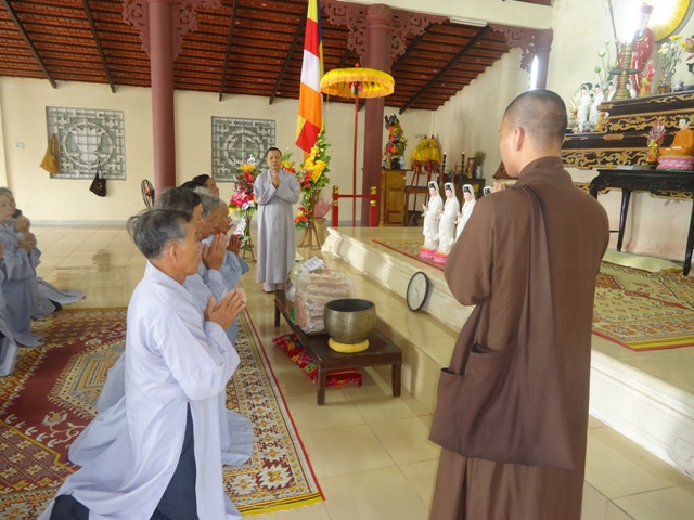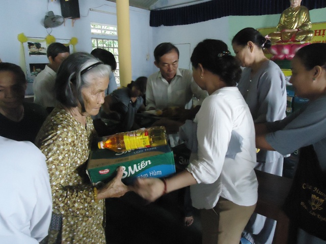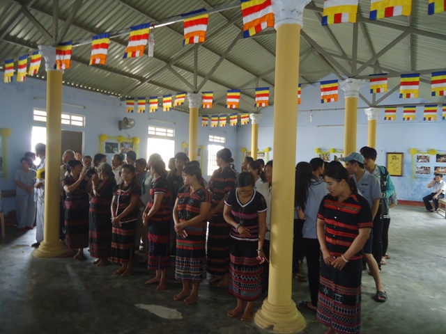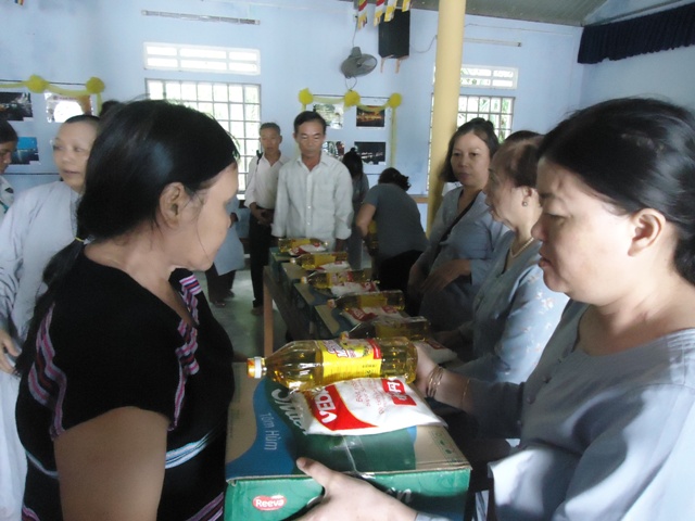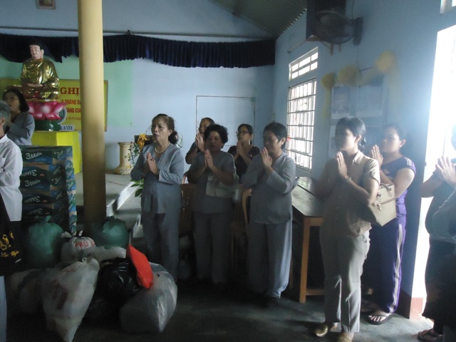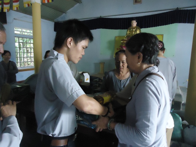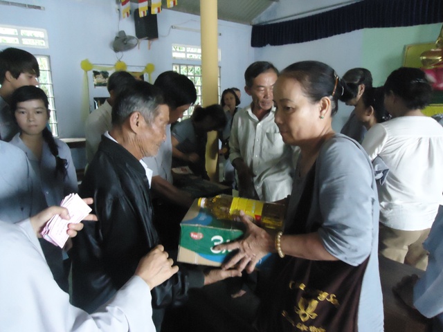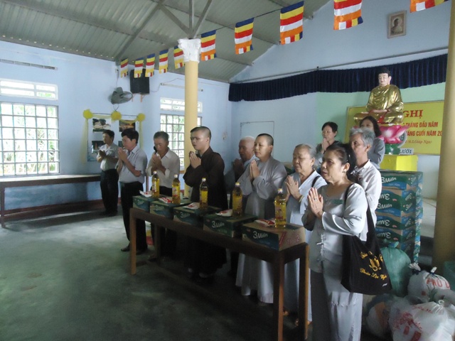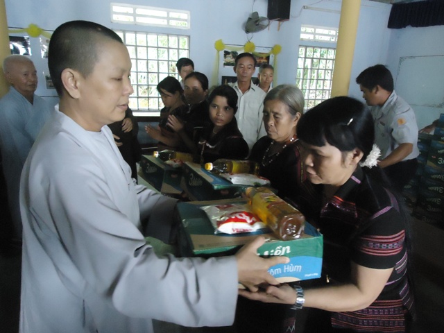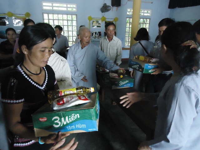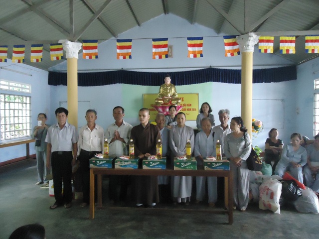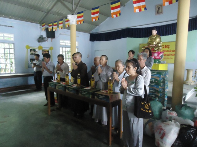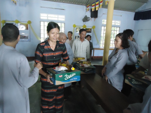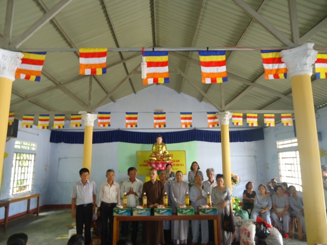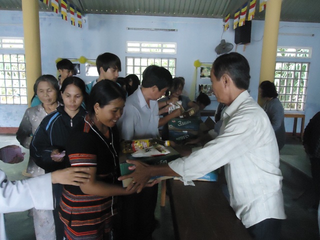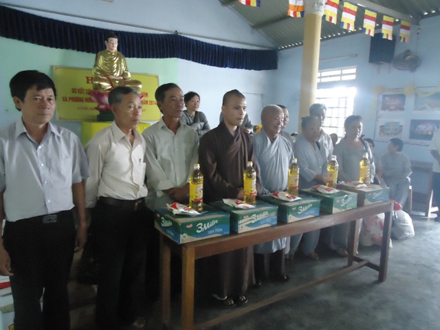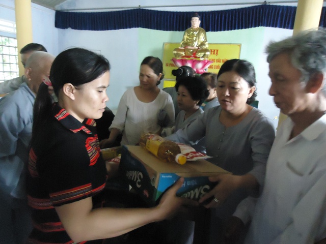 Thay mặt Ban Trị sự, Đại đức Thích Thiền Tâm, UV BTS, Trưởng Ban HDPT đã có lời huấn từ đến toàn thể quý Đạo hữu trong phái đoàn; với tinh thần thượng cầu Phật đạo hạ hóa chúng sanh, quý Đạo hữu bất ngại đường sá, thể hiện đạo tâm đạo tình của người con Phật, tinh thần lá lành đùm lá rách về thăm và tặng bà con nơi đây 100 phần quà, mỗi phần hơn 100.000đ, chia sẻ phần nào khó khăn cùng bà con Phật tử vùng sâu vùng xa.