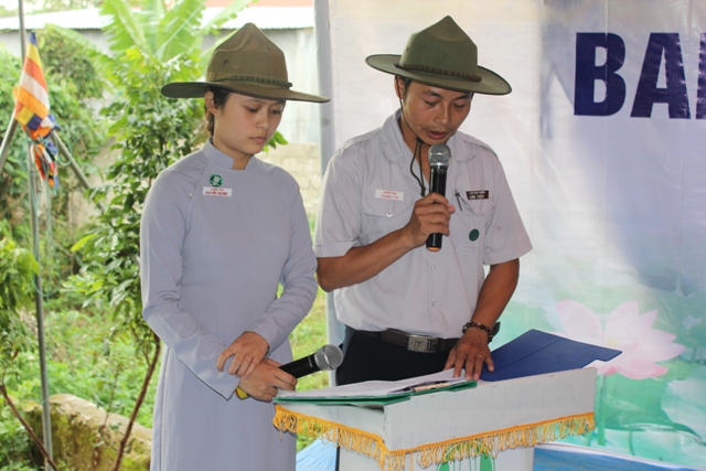 Huynh trưởng Trương Trà và Nguyễn Thị Diệu điều hành chương trình