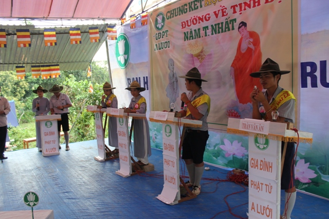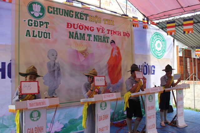 Hội thi Chung kết Đường về Tịnh Độ hôm nay, hân hoan chào đón 4 thí sinh, những gương mặt nổi bật của GĐPT huyện A Lưới. Thí sinh Trần Văn Ân, Lê Văn Ngọc Oanh, Lê Thị Ngọc Yến và Trần Thị Thanh Thủy.