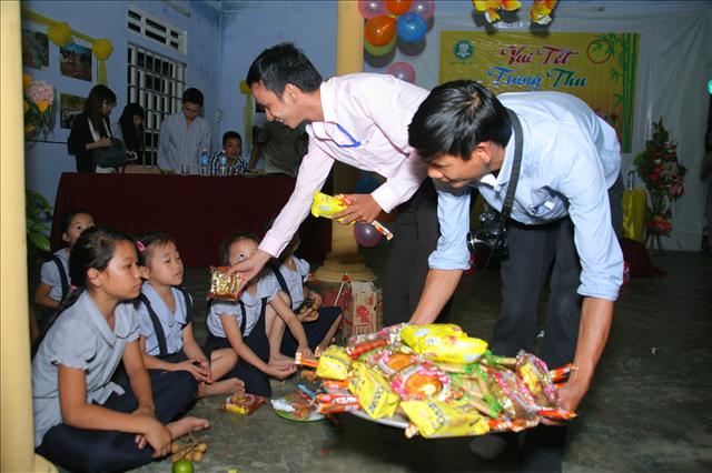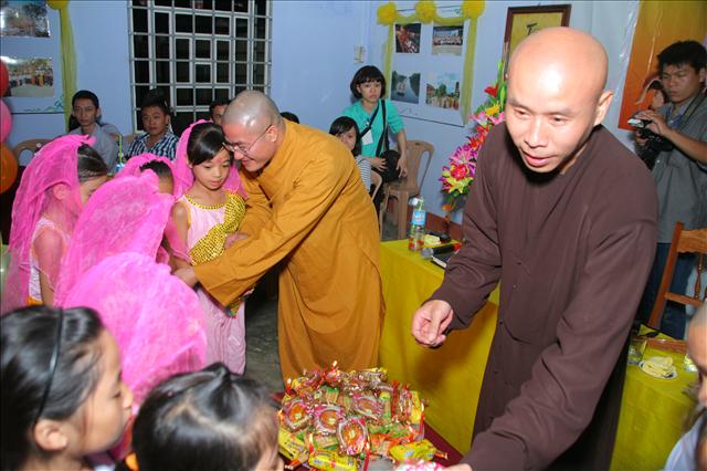 Các em còn được gặp chú Cuội và chị Hằng. Đại Đức Thích Tâm Phương cùng chư Tôn đức phá cỗ, phát quà cho các em.