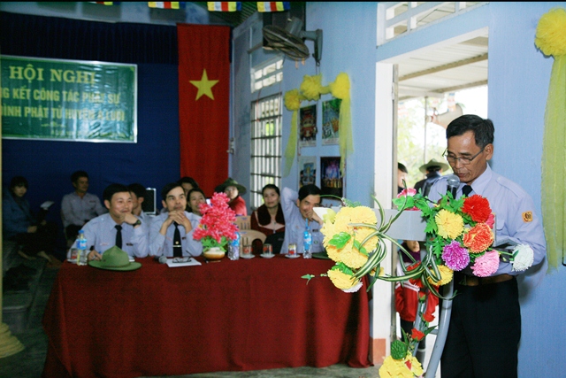 Huynh trưởng Cấp Tín: Quảng Chủng – Hoàng Hữu Ngạn thay mặt cho Ban Huynh trưởng GĐPT huyện A Lưới báo cáo tổng kết công tác phật sự năm 2014 và phương hướng nhiệm vụ 2015. GĐPT huyện A Lưới trong năm qua đã cố gắng hoàn thành tốt các nhiệm vụ của Ban Trị sự cũng như Ban Hộ tự đề ra. Đồng thời đề ra các phương hướng trong năm tới.