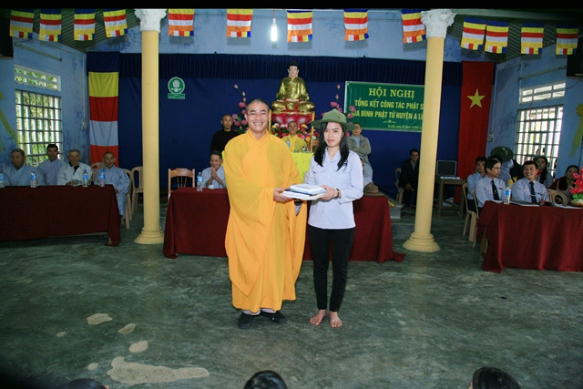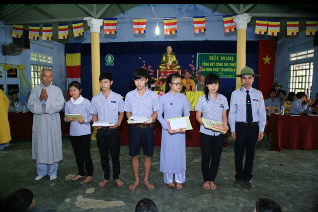 Qua đây, anh Huynh trưởng Cấp Tập: Quảng Danh – Trương Trà báo cáo tổng kết lớp học do Thượng Tọa Thích Huệ Phước, cố vấn giáo hạnh GĐPT huyện A Lưới tổ chức. Qua hơn 6 tháng tu học tại lớp học Phật pháp, cùng với đó là các kì thi của Thượng Tọa đề ra. Các học viên đã xuất sắc hoàn thành tốt và đạt thành tích cao trong các lần thi.