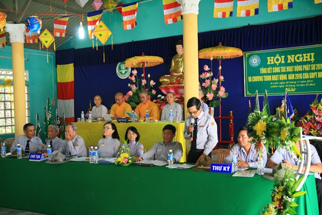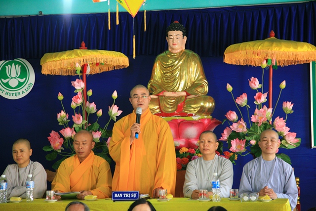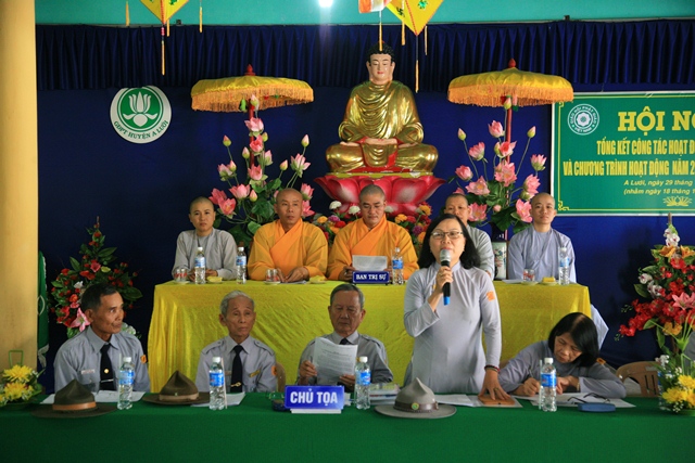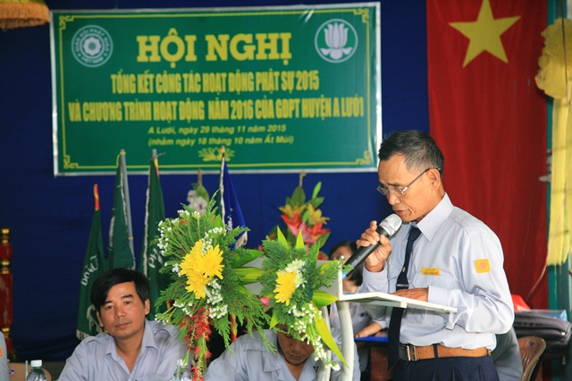 Hội nghị tổng kết hôm nay nhằm đánh giá và rút ra bài học kinh nghiệm qua một năm sinh hoạt và tu học, qua Hội nghị nầy cũng sẽ đề ra chương trình hoạt động năm 2016 của GĐPT huyện. Chúng con xin được khắc ghi và luôn y giáo phụng hành những chỉ dạy của chư Tôn đức, chúng em xin lắng nghe và thực hiện đúng chỉ dẫn của Phân ban GĐPT tỉnh. Quyết tâm xây dựng GĐPT huyện A Lưới ngày càng phát triển và vững mạnh, xứng đáng là thành viên tích cực của tổ chức GĐPT TƯ và của Giáo hội phật giáo Việt Nam".