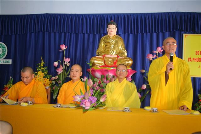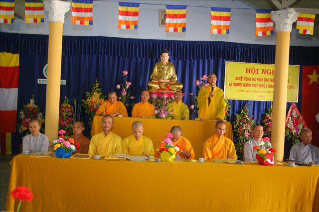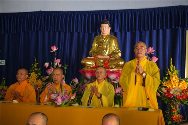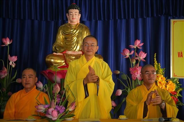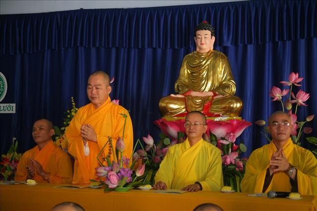 Thay mặt Ban Trị sự, chúng con thành tâm kính chúc chư Tôn thiền đức pháp thể khinh an, chúng sanh dị độ. Kính chúc Quý Đạo hữu Phật tử thân tâm thường an lạc. Chúc Hội nghị thành công viên mãn”.