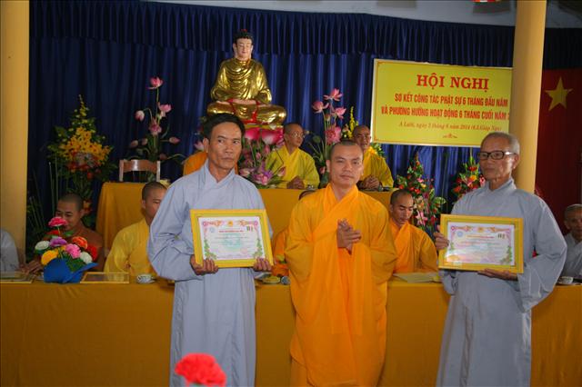 Trong Hội nghị này, Ban Trị sự GHPGVN tỉnh TT. Huế và Ban Trị sự GHPGVN huyện A Lưới đã tặng bằng tán dương công đức cho các tập thể và cá nhân xuất sắc hoàn thành tốt công tác Phật sự góp phần làm nên thành công Đại lễ Phật Đản (Vesak) PL.2558 - DL.2014 do Ban Trị sự tổ chức.