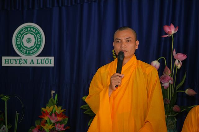 Đại đức Thích Thiền Tâm, UV BTS kiêm Trưởng Ban HDPT đã thay mặt Ban Trị sự đọc lời cảm tạ đến chư Tôn đức và quý vị đại biểu. “Hội nghị Sơ kết công tác Phật sự 6 tháng đầu năm và chương trình hoạt động 6 tháng cuối năm 2014 tổ chức tại huyện A Lưới tỉnh Thừa Thiên Huế diễn ra trang nghiêm trọng thể và thành tựu viên mãn trong không khí hân hoan của toàn thể Tăng Ni, tín đồ Phật tử cùng tham dự. Thay mặt Ban Trị sự GHPGVN huyện A Lưới, chúng con thành kính đảnh lễ niệm ân: Chư Tôn đức Thường trực Ban Trị sự GHPGVN tỉnh Thừa Thiên Huế; Chư Tôn đức Chứng minh Ban Trị sự GHPGVN huyện A Lưới. Ban Trị sự xin ghi nhận và tán dương công đức quý Đạo hữu Phật tử gần xa đã về tham dự Hội nghị và giúp đỡ nhiều mặt cho Ban Trị sự. Trong quá trình tổ chức không sao tránh khỏi những thiếu sót, kính mong chư Tôn đức, quý Đạo hữu Phật tử niệm tình hoan hỷ. Thành tâm kính chúc chư Tôn đức cùng Quý liệt vị thân tâm thường lạc, thành đạt trên mọi lĩnh vực”.