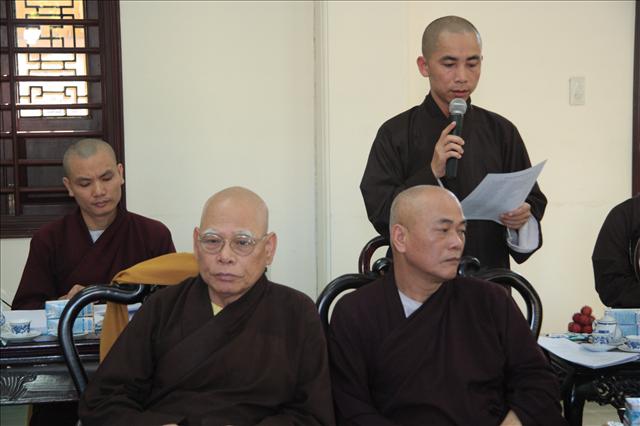 Đại đức Thích Quang Tư , Phó Thư ký kiêm Chánh Văn phòng BTS GHPGVN tỉnh Thừa Thiên Huế đã báo cáo công tác Phật sự trong thời gian qua. Đồng thời phiên họp cũng thảo luận về việc tổ chức khóa tập huấn trú trì dành cho Tăng Ni trẻ trên địa bàn tỉnh; công tác thực hiện Thông tư số 182 về việc thống kê cơ sở từ thiện và Thông tư số 197 về việc đổi con dấu của Giáo hội cùng một số hoạt động Phật sự quan trọng khác.