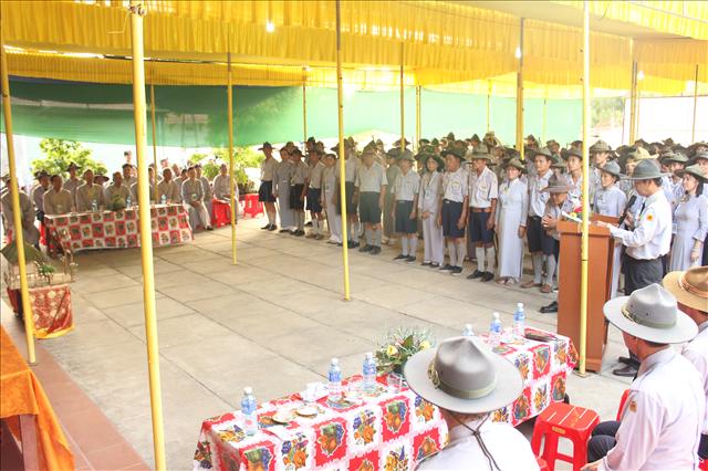Huynh trưởng Tâm Chánh - Lê Văn Cự đọc quyết định thành lập Ban Quản trại