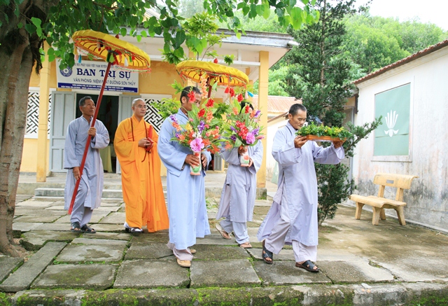 Quang lâm và chứng minh khóa tu có Đại đức Thích Tâm Phương, Trưởng Ban Trị sự GHPGVN huyện A Lưới; Sư cô Thích Nữ Diệu Trung, Phó Trưởng Ban Trị sự cùng đông đảo Phật tử tại thành phố Huế, Tp. HCM và Đà Nẵng cùng về dự tu. Sau phần nghi lễ Sám hối và niệm Phật, Ban Hộ tự thay mặt Đạo tràng cung thỉnh Đại đức Trưởng Ban Trị sự quang lâm đại hùng bảo điện để truyền giới và chia sẻ pháp thoại đến đại chúng.