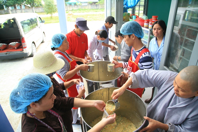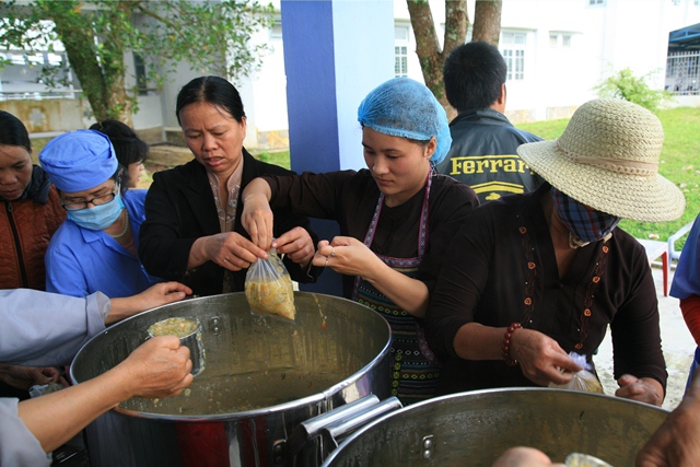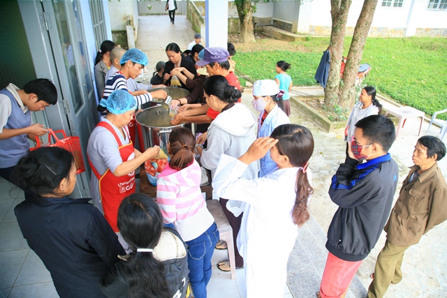 Phát cháo dinh dưỡng tại bệnh viện huyện A Lưới