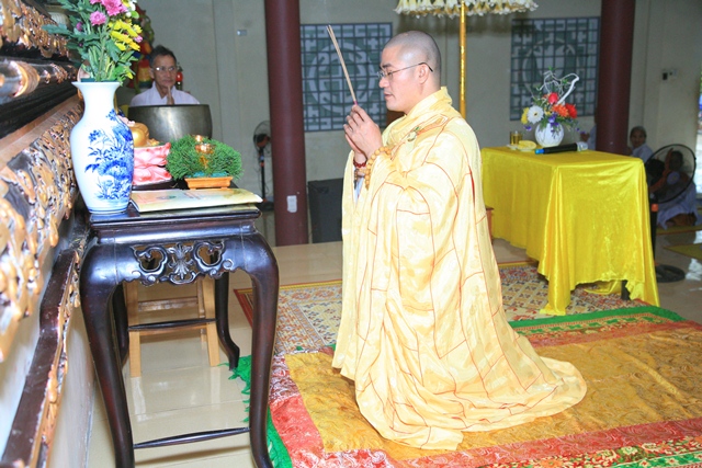 Đại đức Thích Tâm Phương niêm hương bạch Phật