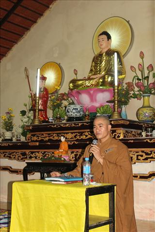 Đại đức Trưởng Ban Tổ chức chia sẻ pháp thoại "Thiền - Tịnh song tu"