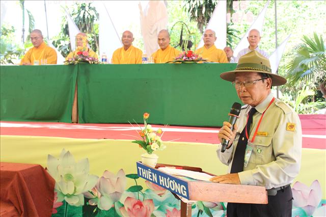 Huynh trưởng Tâm Quả - Hà Văn Tám, Liên Đoàn trưởng GĐPT Thiên Hương phát biểu cảm tạ.